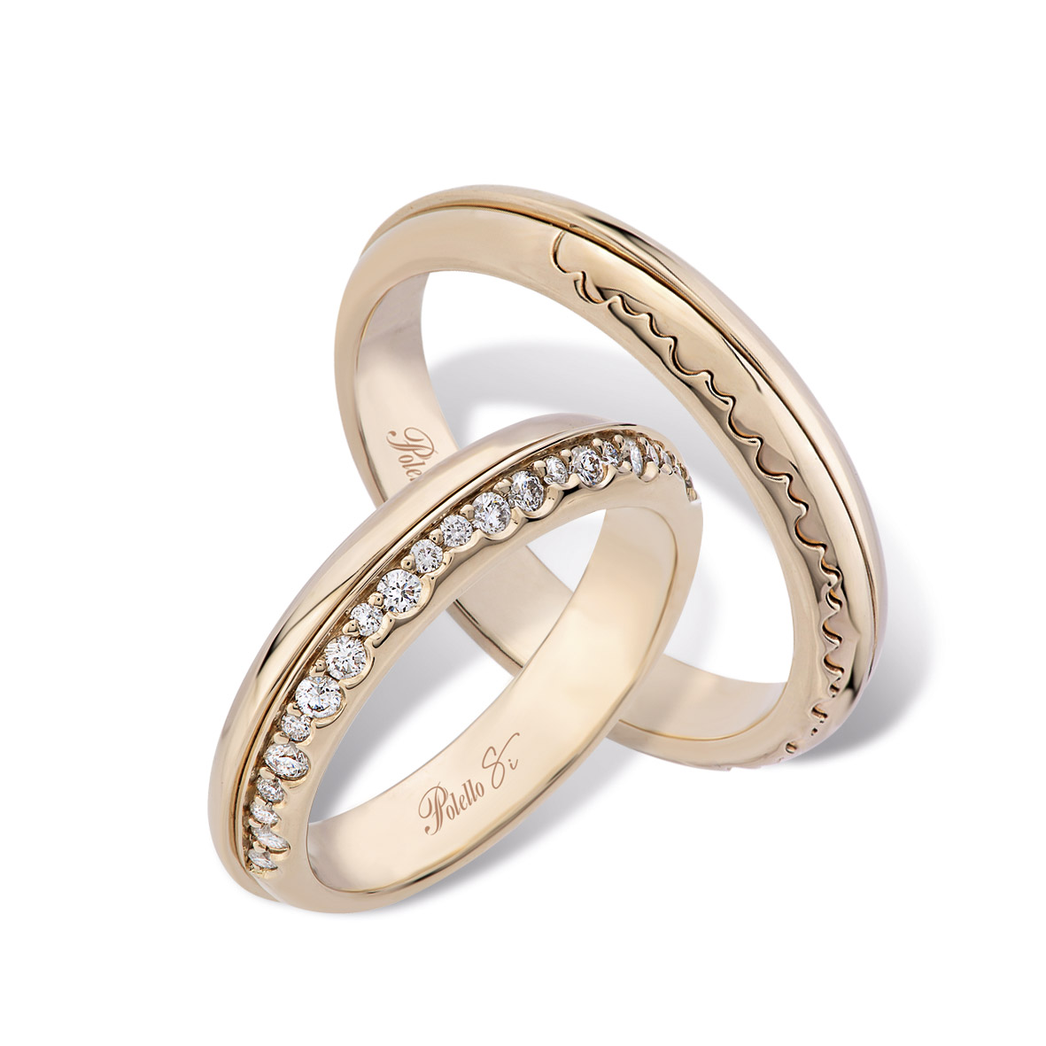 Ogni fede è unica ed è prodotta a partire da una microfusione e non attraverso un procedimento meccanico. L’artigiano lavora manualmente ogni pezzo, dall’inizio della produzione, sino alla pulitura finale, curando attentamente ogni dettaglio, in ogni passaggio.